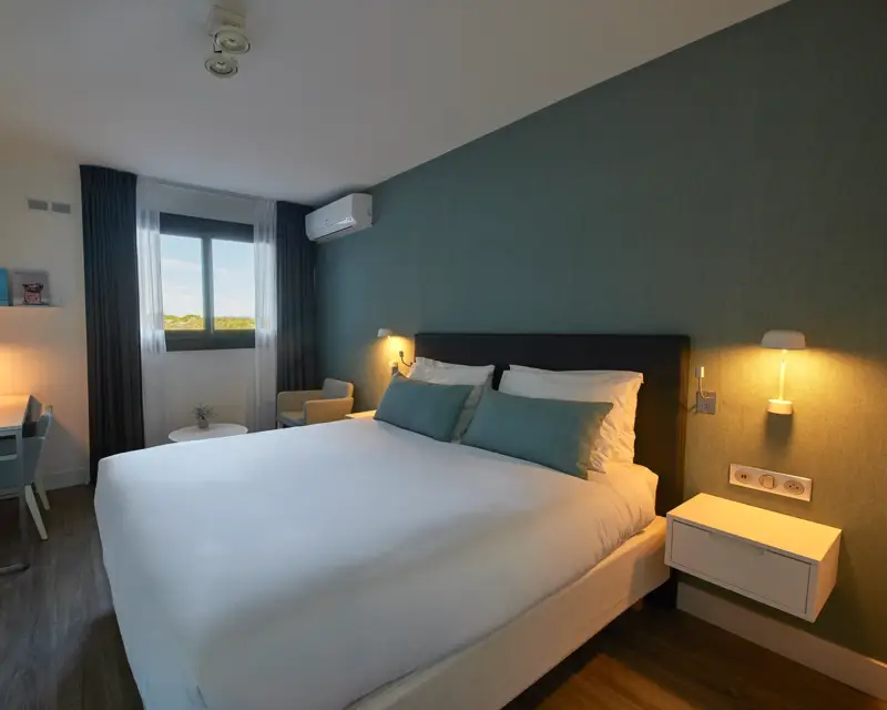 Les chambres Confort sont des chambres doubles de 14m2 décorées de manière moderne. Toutes sont équipées d'une douche à l’italienne.